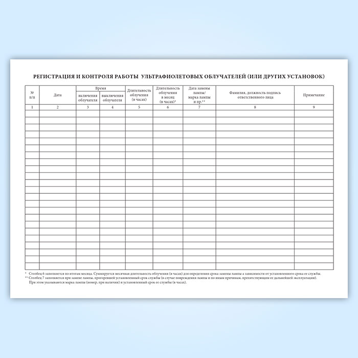 Журнал учета работы ультрафиолетовых облучателей (или других установок) (обсерватор) в Хотьково купить