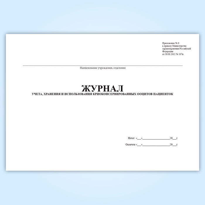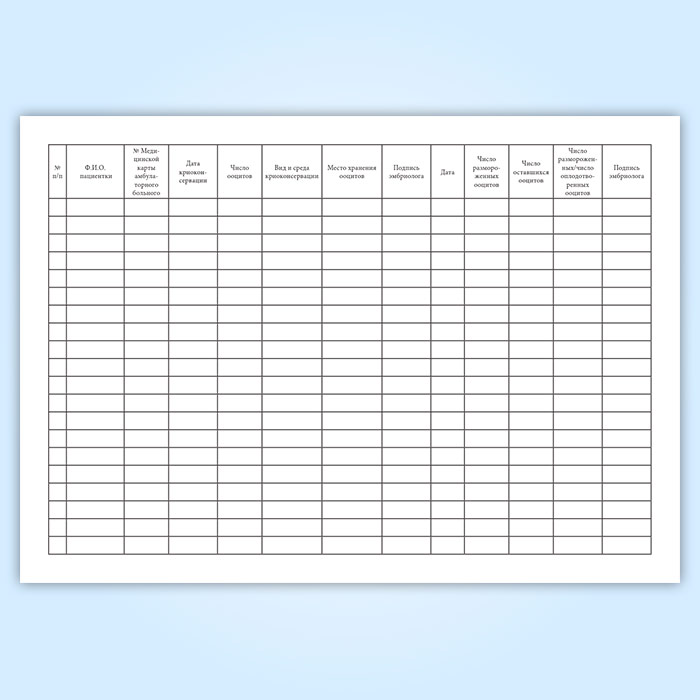 Журнал учета, хранения и использования криоконсервированных ооцитов пациенток в Хотьково купить