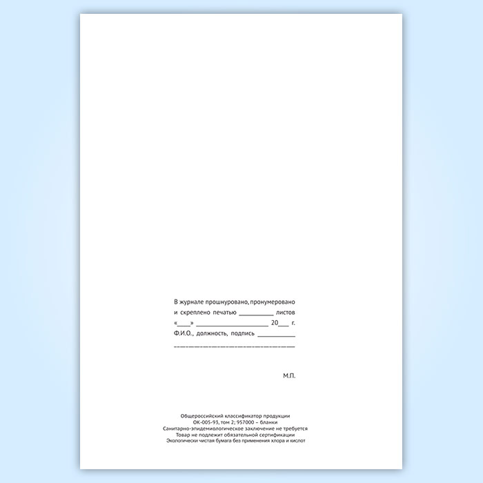Вы получаете печатную продукцию прошнурованной и c местом для вашей печати в соответствии с действующими нормативными документами: