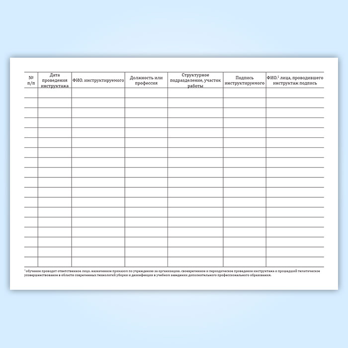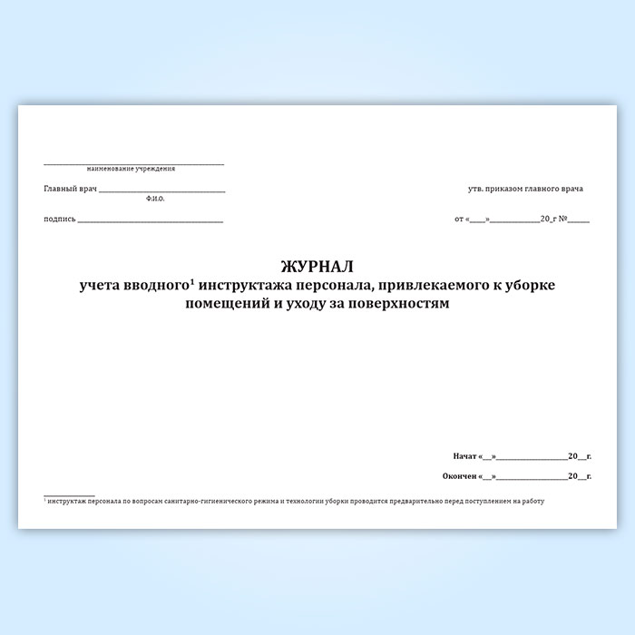 Журнал учета вводного инструктажа персонала, привлекаемого к уборке помещений и уходу за поверхностями в Хотьково купить