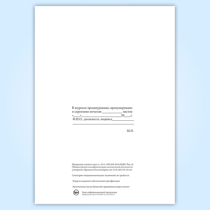 Вы получаете печатную продукцию прошнурованной и c местом для вашей печати в соответствии с действующими нормативными документами: