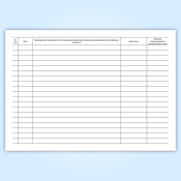 Журнал учета проведенных мероприятий по профилактике распространения коронавирусной инфекции COVID-19 в Хотьково купить