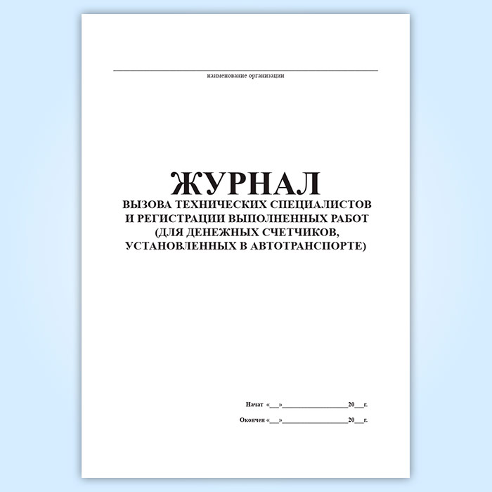 Журнал вызова технических специалистов и регистрации выполненных работ (для денежных счетчиков, установленных в автотранспорте) в Хотьково купить