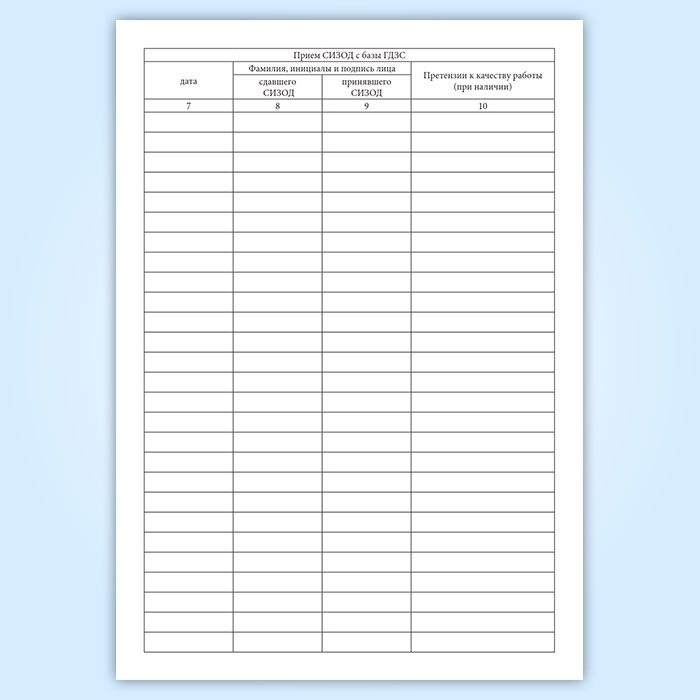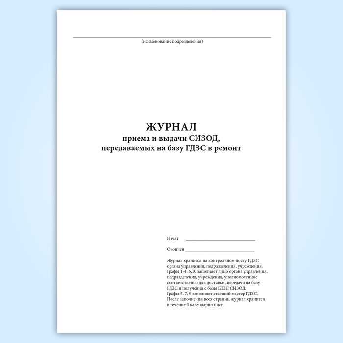 Журнал приема и выдачи СИЗОД, передаваемых на базу ГДЗС в ремонт в Хотьково купить