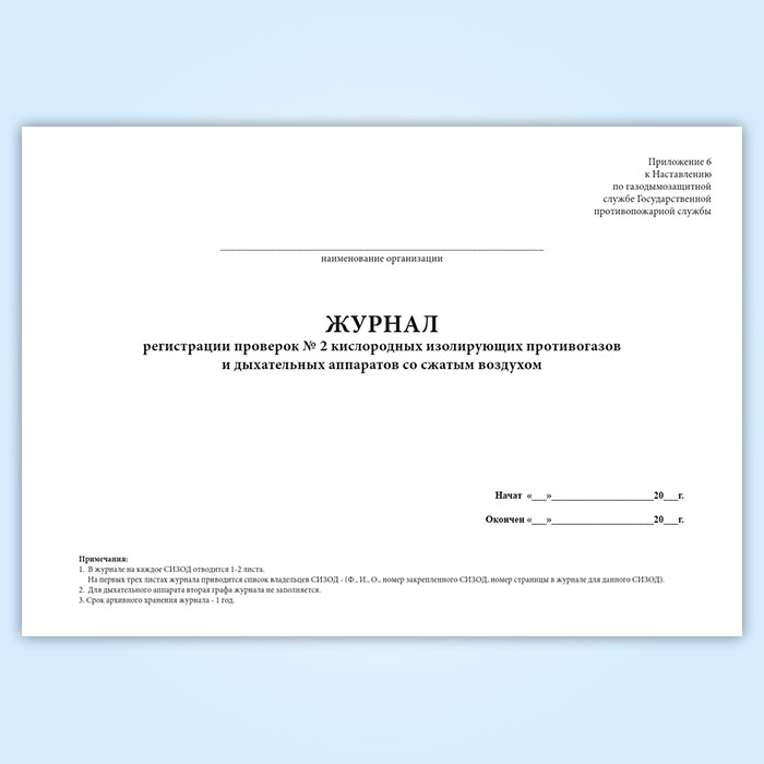 Журнал регистрации проверок № 2 кислородных изолирующих противогазов и дыхательных аппаратов на сжатом воздухе в Хотьково купить