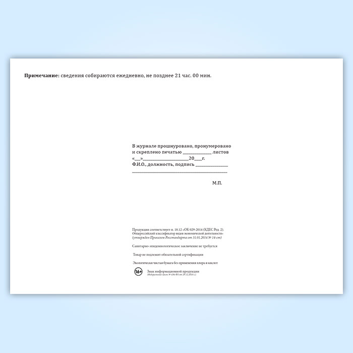Вы получаете печатную продукцию прошнурованной и c местом для вашей печати в соответствии с действующими нормативными документами: