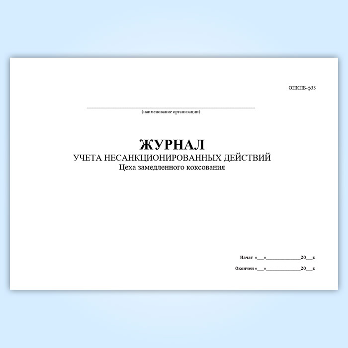 Журнал учета несанкционированных действий цеха замедленного коксования (ОПКПБ-ф33) в Хотьково купить