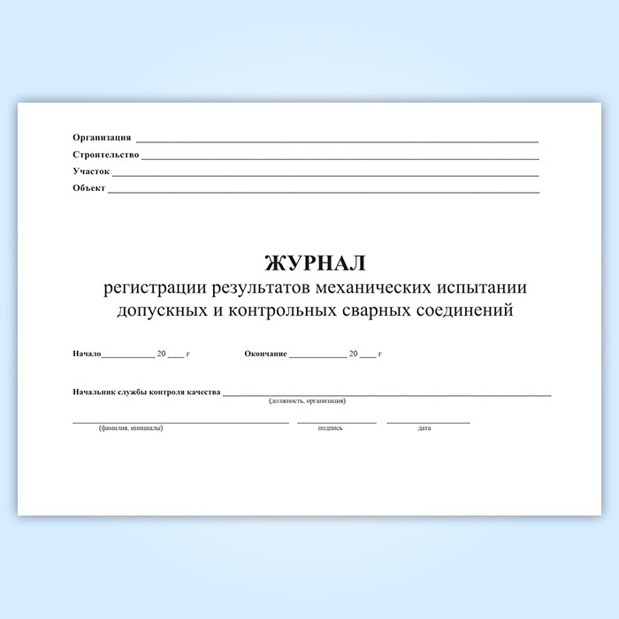 Журнал регистрации результатов механических испытаний допускных и контрольных сварных соединений в Хотьково купить