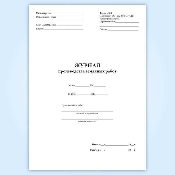 Журнал производства земляных работ (форма 2.4) (трубопроводы) в Хотьково купить