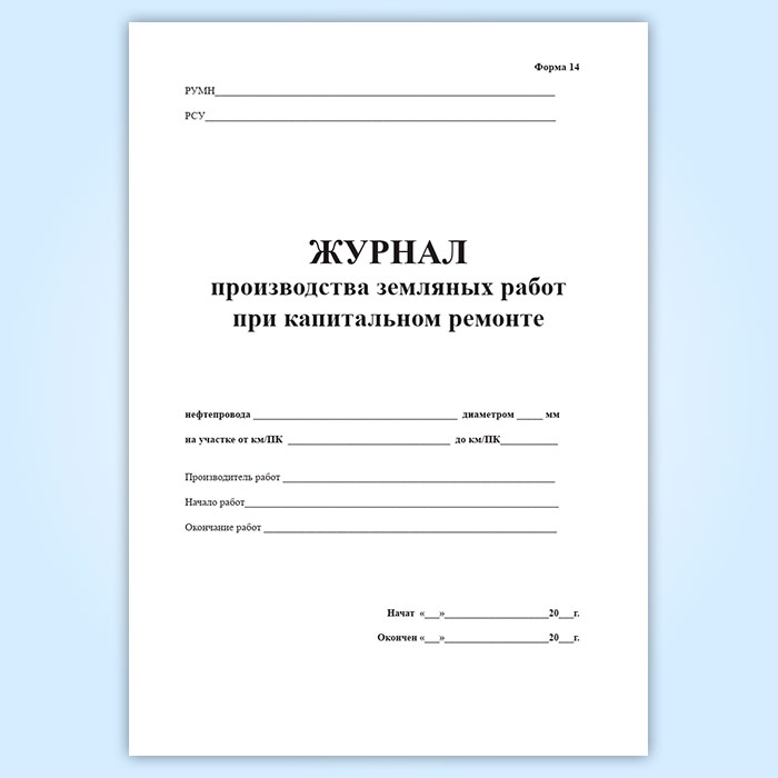 Журнал производства земляных работ при капитальном ремонте (форма 14) в Хотьково купить