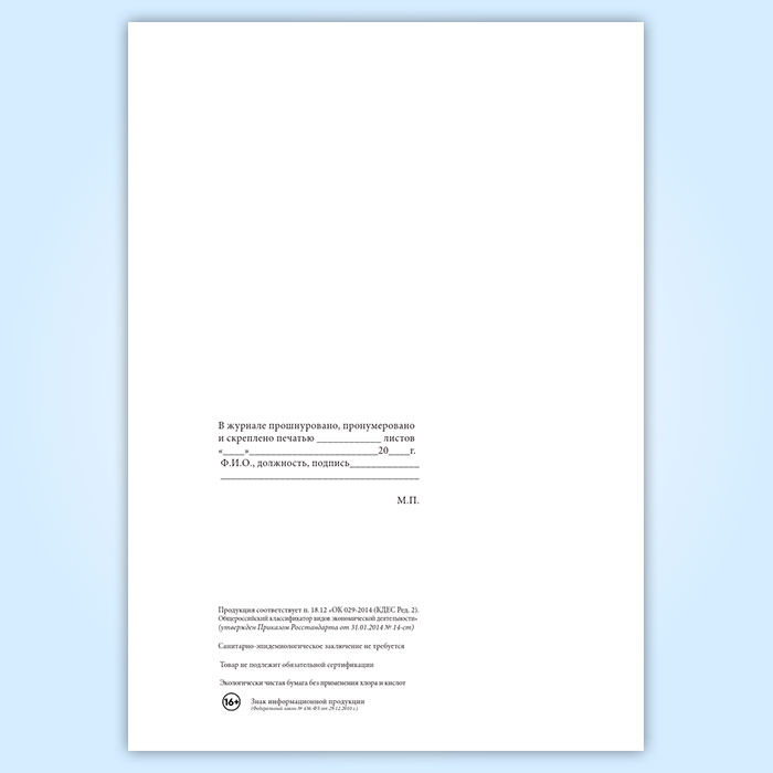 Вы получаете печатную продукцию прошнурованной и c местом для вашей печати в соответствии с действующими нормативными документами: