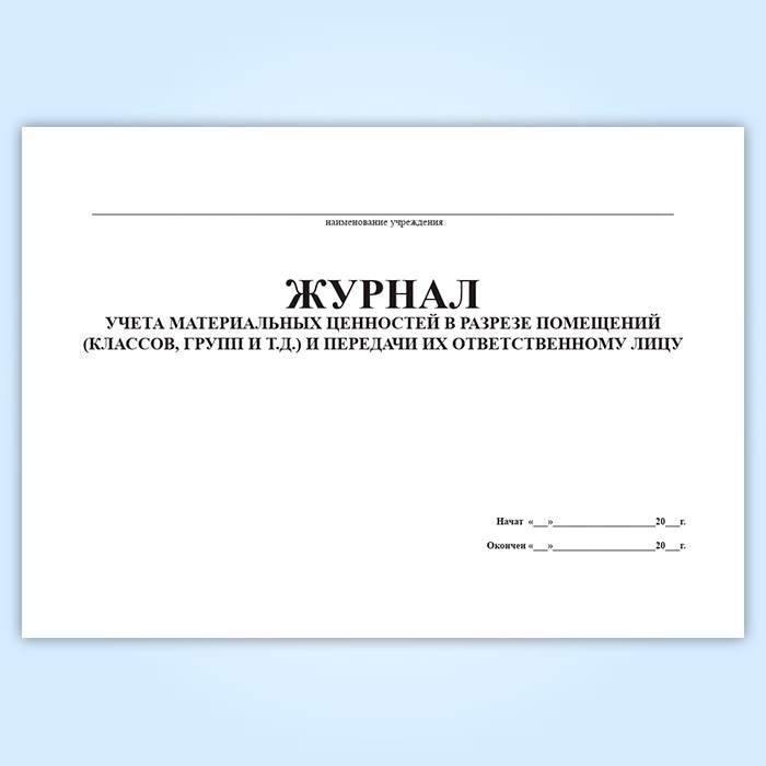 Журнал учета материальных ценностей в разрезе помещений (классов, групп и т.д.) и передачи их ответственному лицу в Хотьково купить