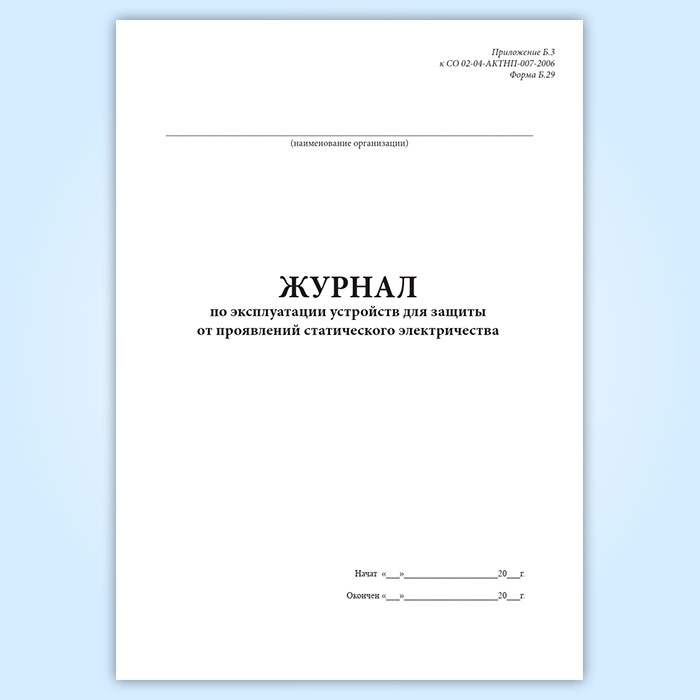 Журнал по эксплуатации устройств для защиты от проявлений статического электричества (форма Б.29) в Хотьково купить