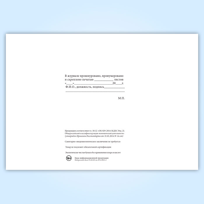 Вы получаете печатную продукцию прошнурованной и c местом для вашей печати в соответствии с действующими нормативными документами: