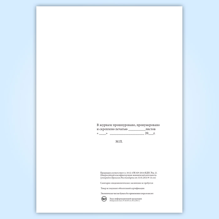 Вы получаете печатную продукцию прошнурованной и c местом для вашей печати в соответствии с действующими нормативными документами: