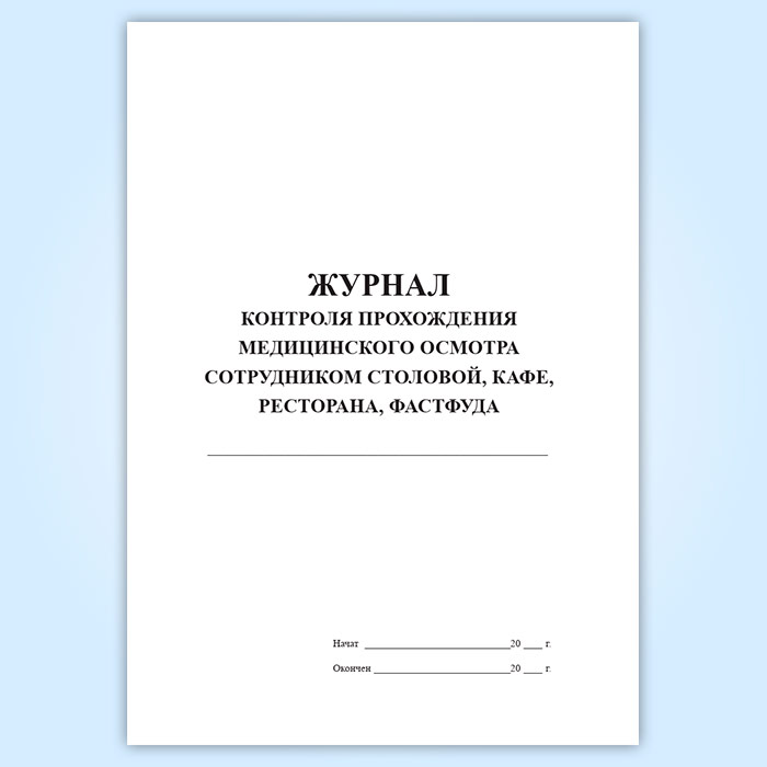 Журнал контроля прохождения медицинского осмотра сотрудником столовой, кафе, ресторана, фастфуда в Хотьково купить