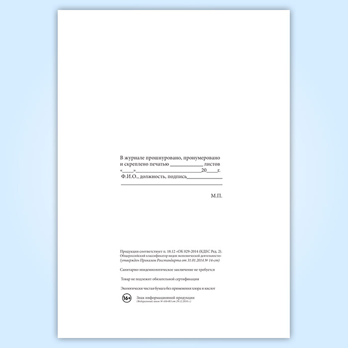 Вы получаете печатную продукцию прошнурованной и c местом для вашей печати в соответствии с действующими нормативными документами: