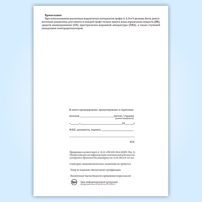 Книга учета выдачи и возврата взрывчатых материалов в Хотьково купить