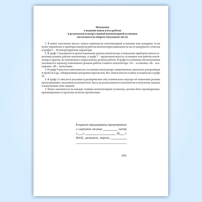 Книга учета работы и результатов осмотра главной вентиляторной установки в Хотьково купить