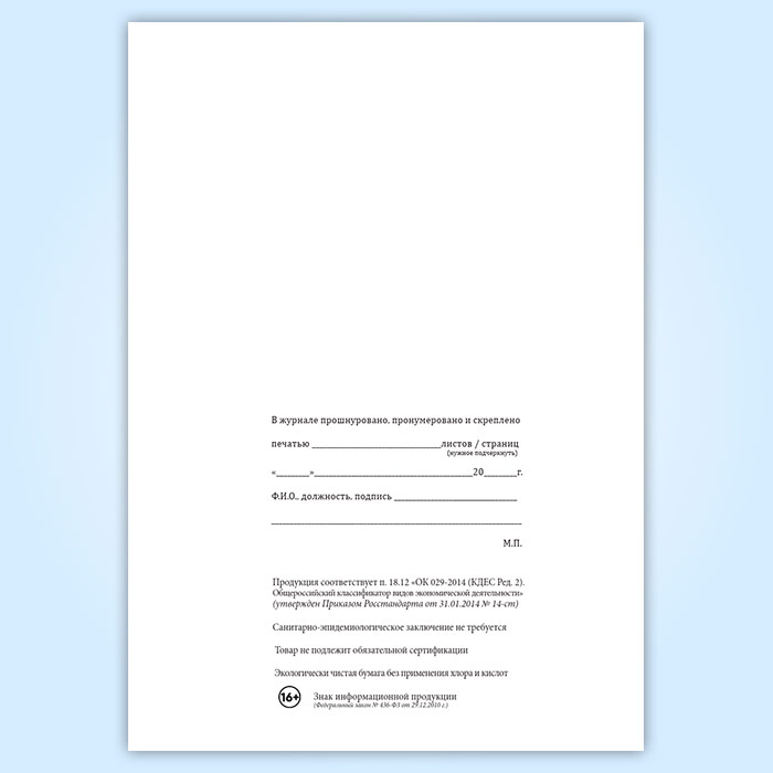 Вы получаете печатную продукцию прошнурованной и c местом для вашей печати в соответствии с действующими нормативными документами: