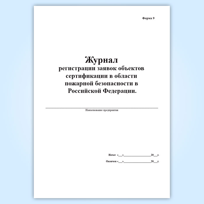 Журнал регистрации заявок объектов сертификации в области пожарной безопасности в Российской Федерации (форма 9) в Хотьково купить