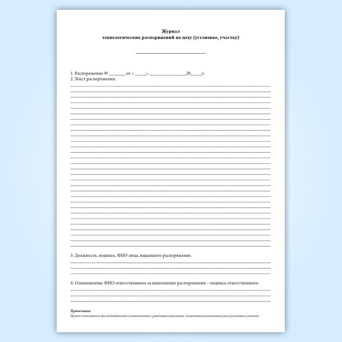 Журнал технологических распоряжений по цеху (установке, участку) в Хотьково купить