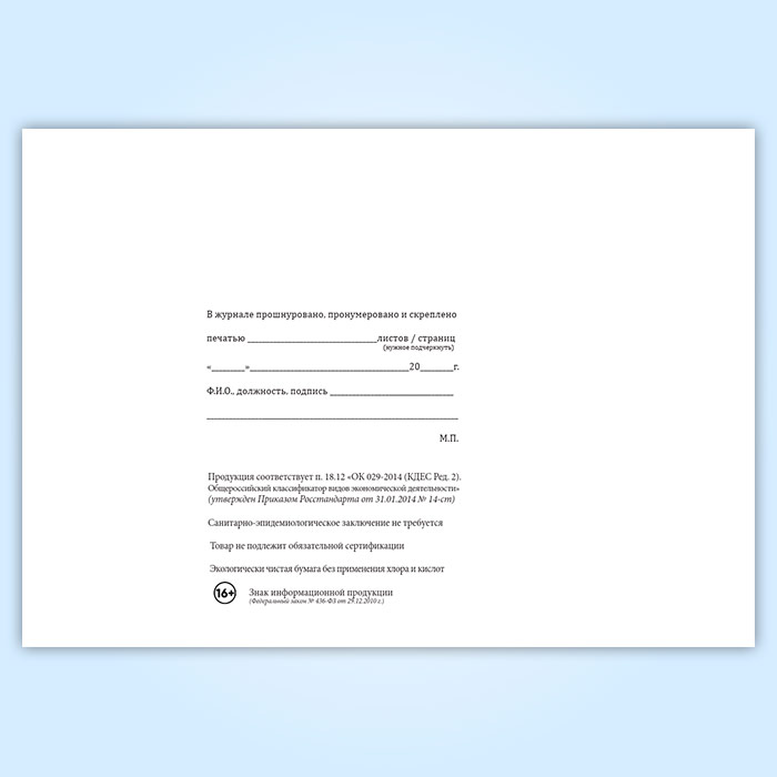 Вы получаете печатную продукцию прошнурованной и c местом для вашей печати в соответствии с действующими нормативными документами: