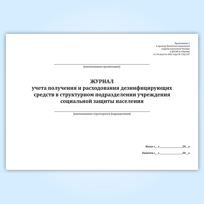 Журнал учета получения и расходования дезинфицирующих средств в структурном подразделении учреждения социальной защиты населения в Хотьково купить