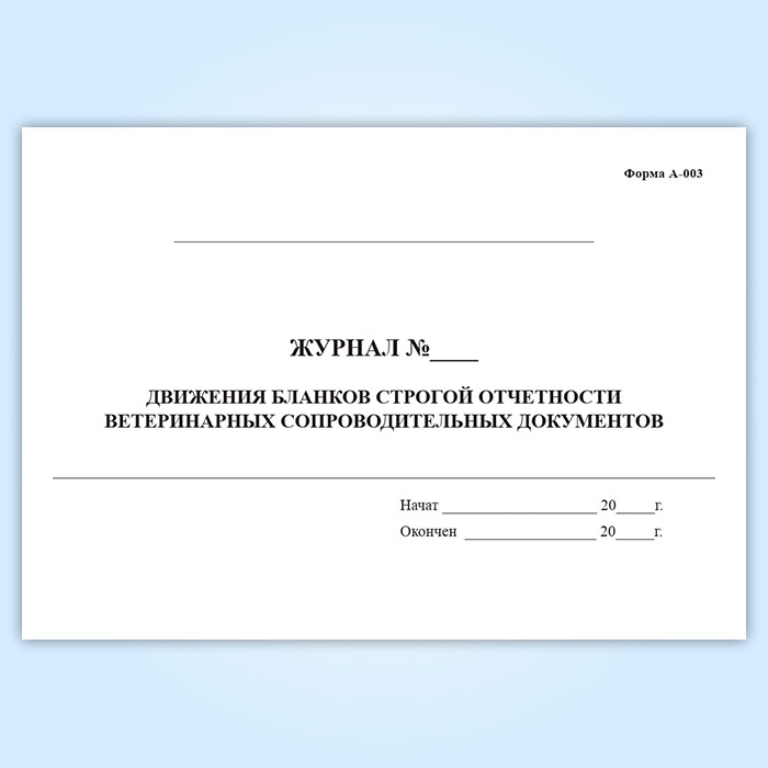 Журнал движения бланков строгой отчетности ветеринарных сопроводительных документов (форма А-003) в Хотьково купить