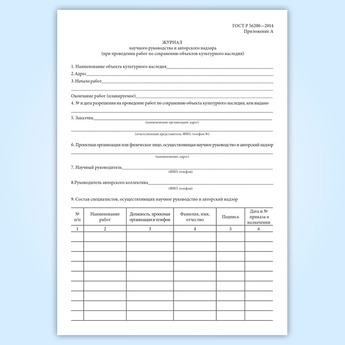 Журнал научного руководства и авторского надзора при проведении работ по сохранению объектов культурного наследия в Хотьково купить
