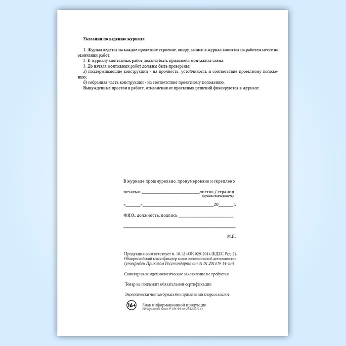 Журнал монтажных работ в Хотьково купить