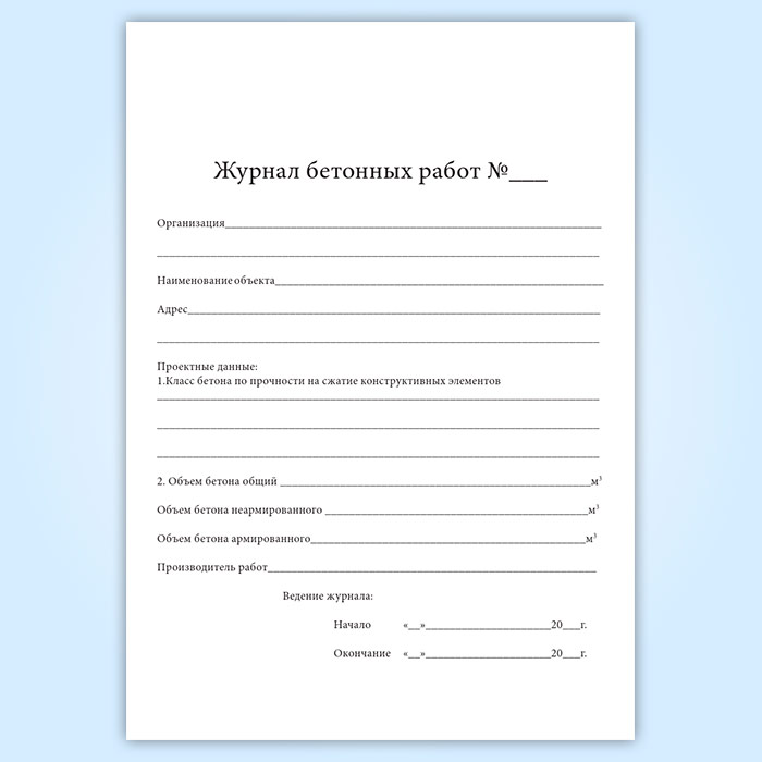 Журнал бетонных работ в Хотьково купить