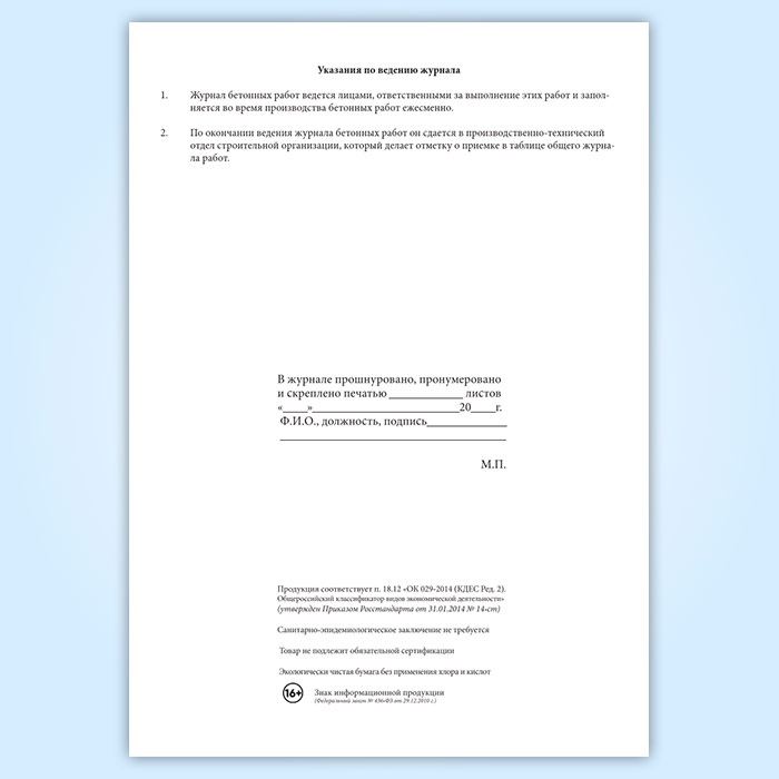 Вы получаете печатную продукцию прошнурованной и c местом для вашей печати в соответствии с действующими нормативными документами: