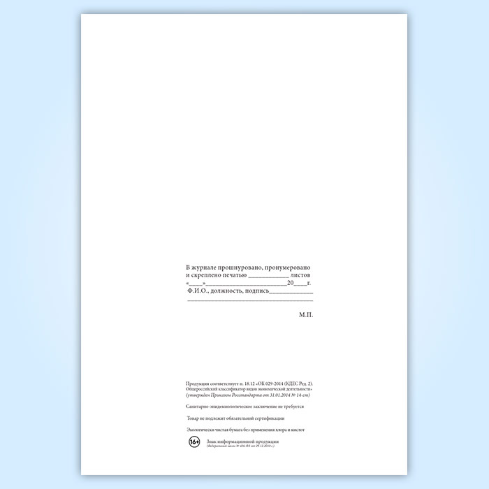 Вы получаете печатную продукцию прошнурованной и c местом для вашей печати в соответствии с действующими нормативными документами:
