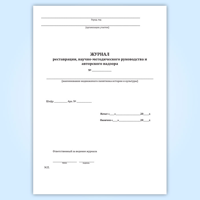 Журнал реставрации, научно-методического руководства и авторского надзора в Хотьково купить
