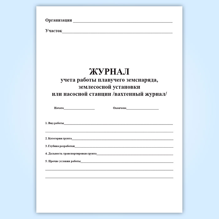 Журнал учета работы плавучего земснаряда, землесосной установки или насосной станции (вахтенный журнал) (форма ПД-3) в Хотьково купить