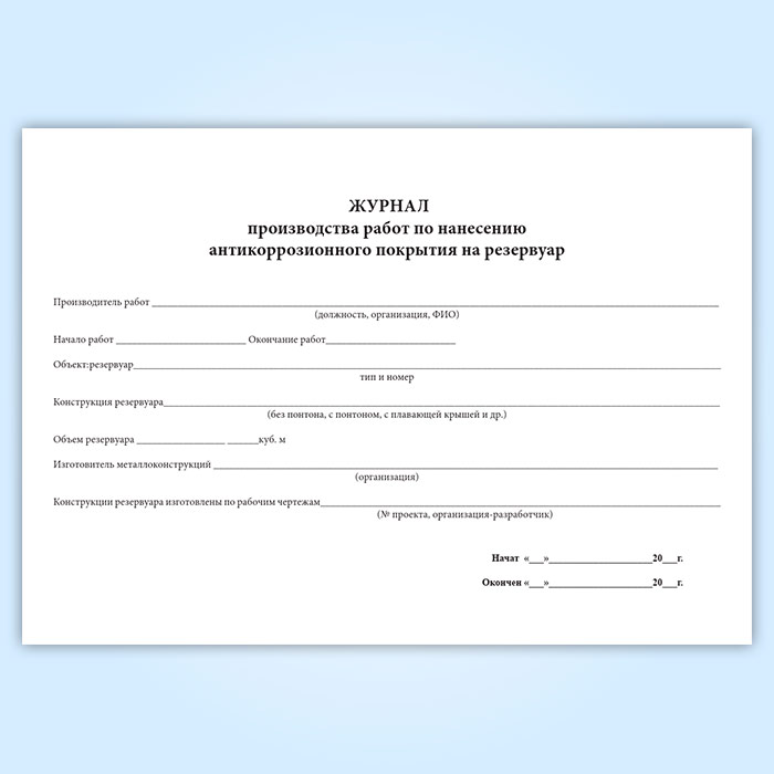 Журнал производства работ по нанесению антикоррозионного покрытия на резервуар в Хотьково купить