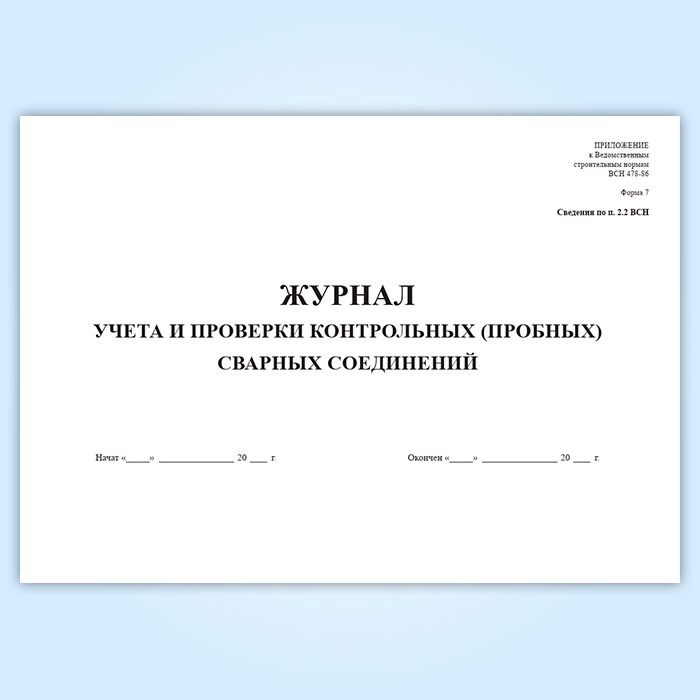 Журнал учета и проверки качества контрольных (пробных) сварных соединений (форма 7) в Хотьково купить