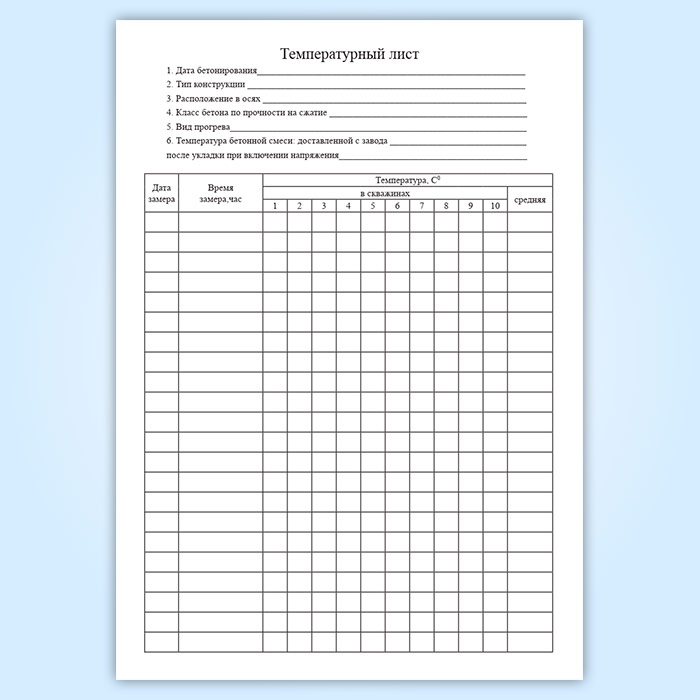 Журнал ухода за бетоном (с графиком продолжительности твердения) в Хотьково купить