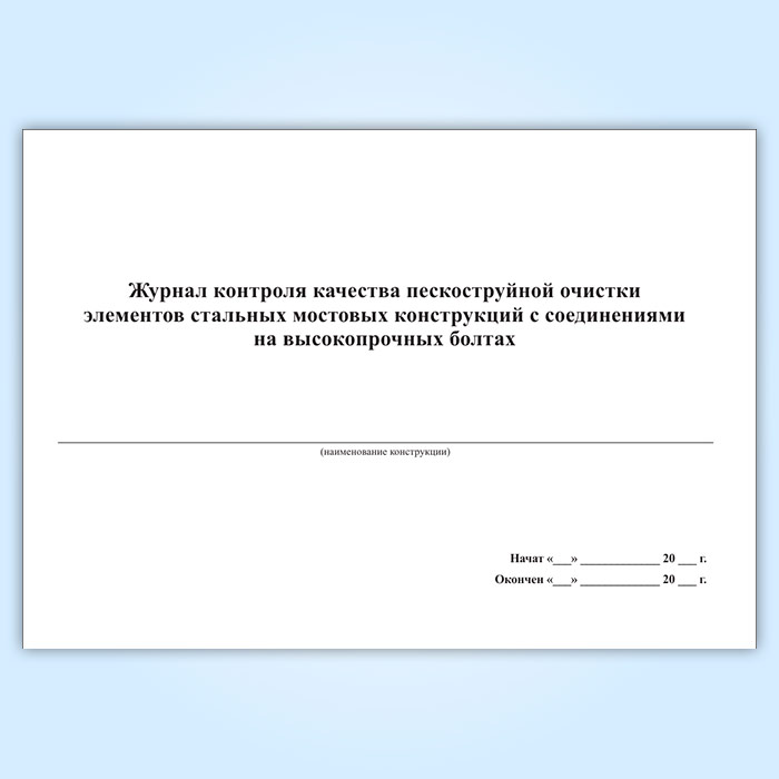 Журнал контроля качества пескоструйной очистки элементов стальных мостовых конструкций с соединениями на высокопрочных болтах в Хотьково купить