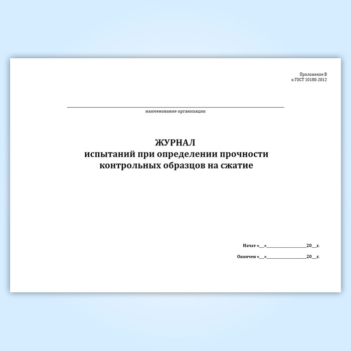 Журнал испытаний при определении прочности контрольных образцов на сжатие в Хотьково купить