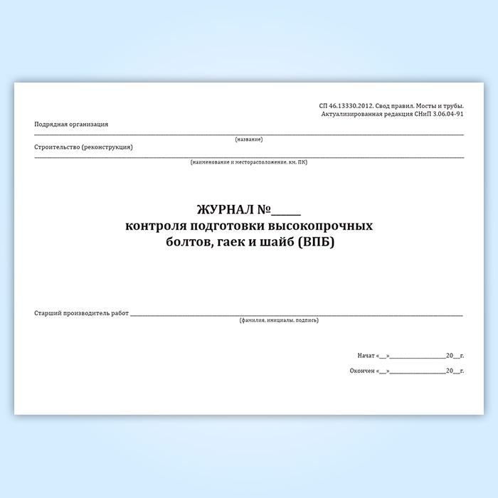 Журнал контроля подготовки высокопрочных болтов, гаек и шайб в Хотьково купить