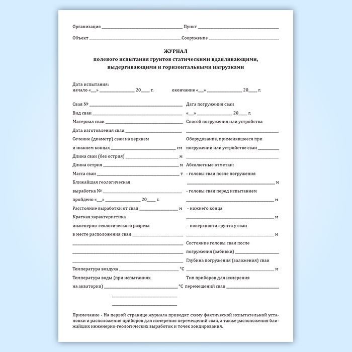 Журнал полевого испытания грунтов статическими вдавливающими, выдергивающими и горизонтальными нагрузками в Хотьково купить