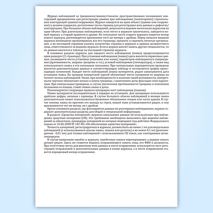 Журнал наблюдений за трещинами/швами/стыками, пространственным положением конструкций (для одного объекта) в Хотьково купить