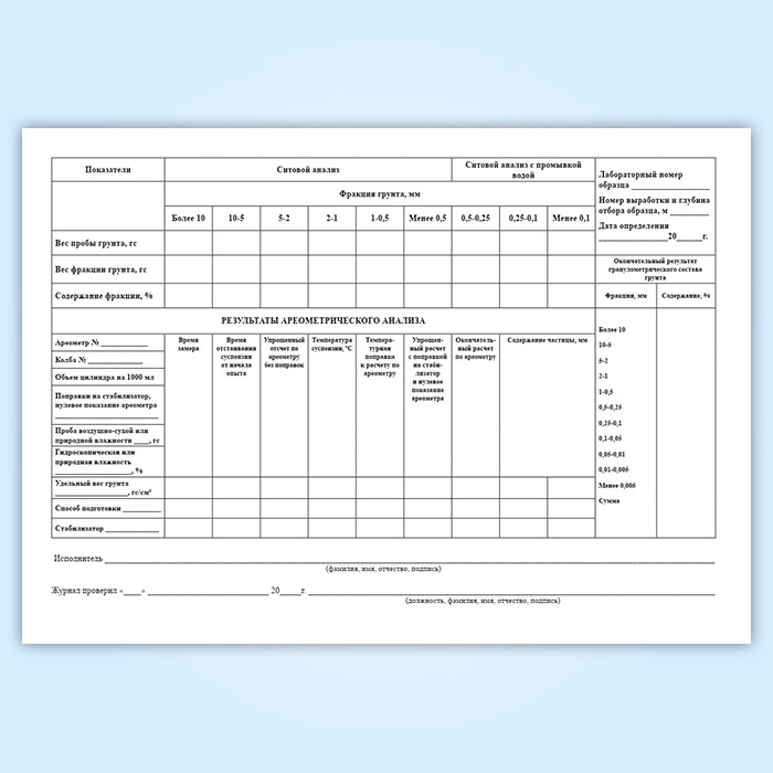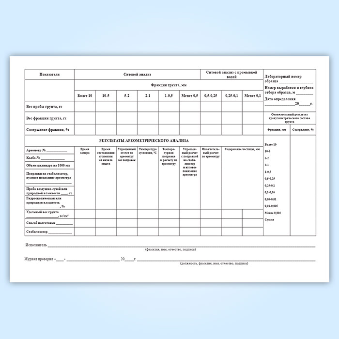 Журнал лабораторного определения гранулометрического (зернового) состава грунта в Хотьково купить