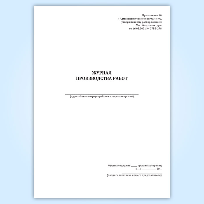 Журнал производства работ (Распоряжение Мособлархитектуры МО от 16.08.2021 N 27РВ-278) в Хотьково купить
