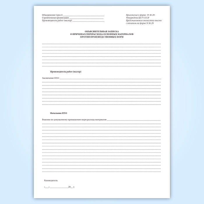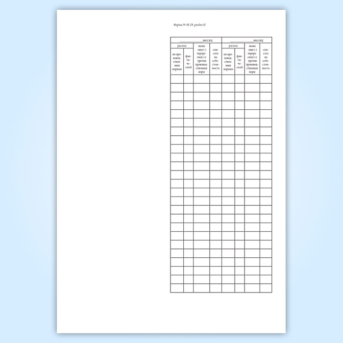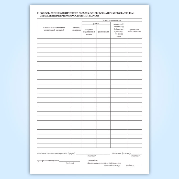 Отчет о расходе основных материалов в строительстве в сопоставлении с расходом, определенным по производственным нормам (форма М-29) в Хотьково купить