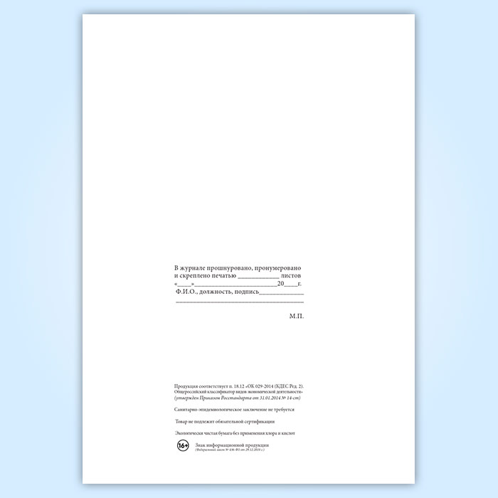 Вы получаете печатную продукцию прошнурованной и c местом для вашей печати в соответствии с действующими нормативными документами: