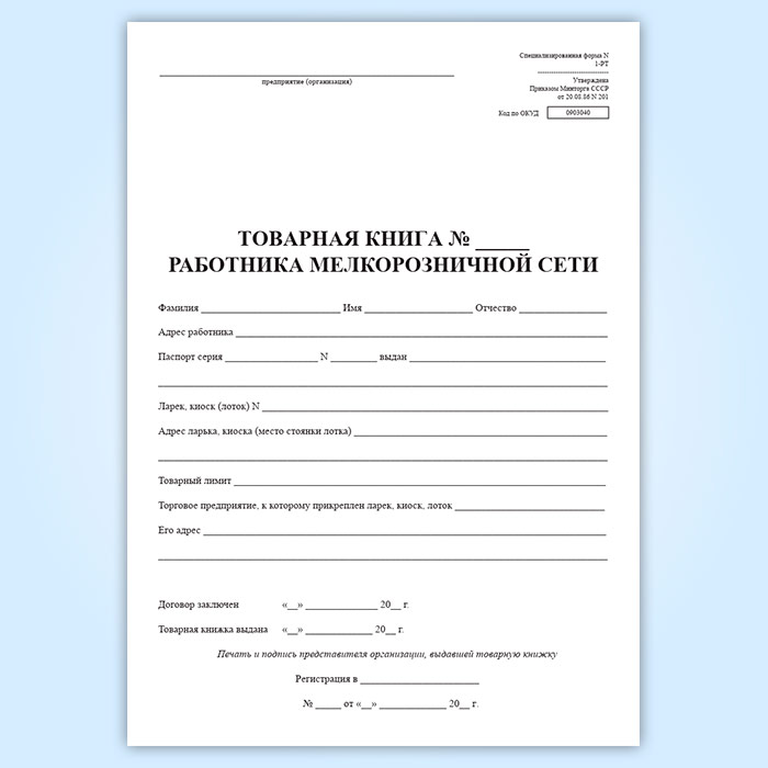 Товарная книга работника мелкорозничной сети. Специализированная (форма № 1-РТ) в Хотьково купить