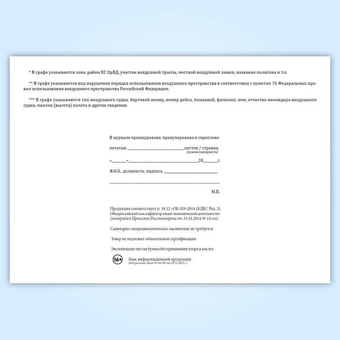 Журнал учета нарушений порядка использования воздушного пространства в Хотьково купить